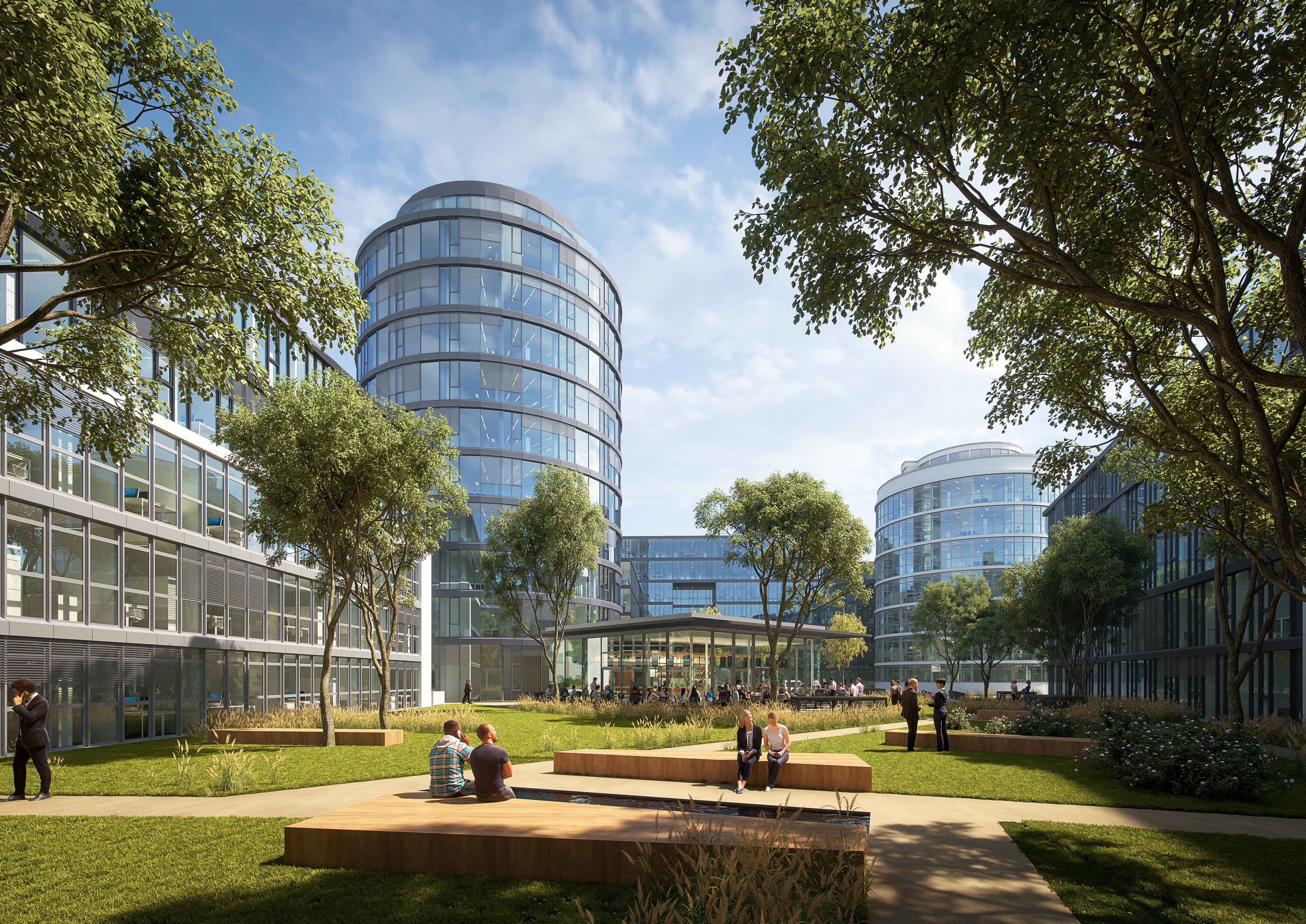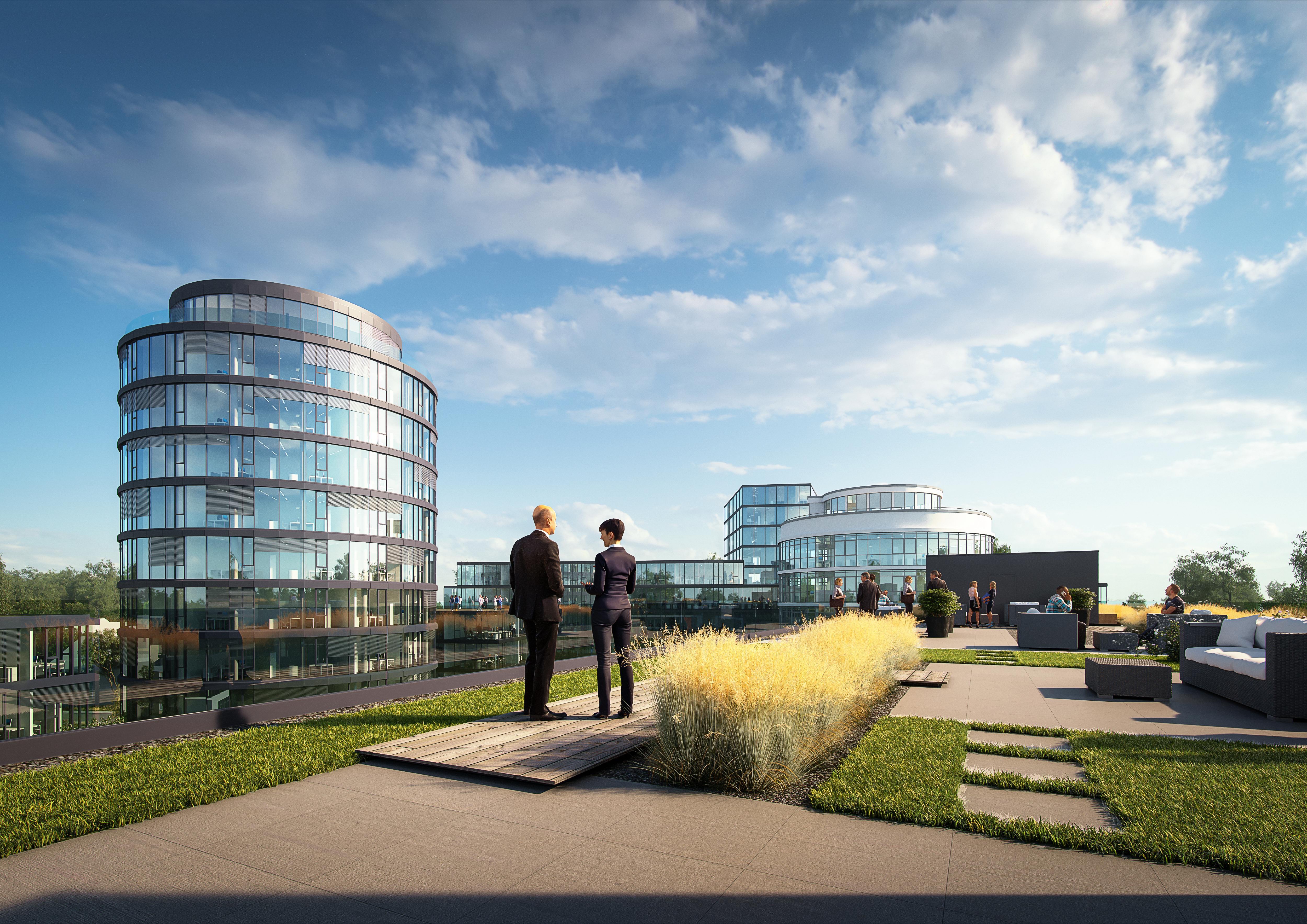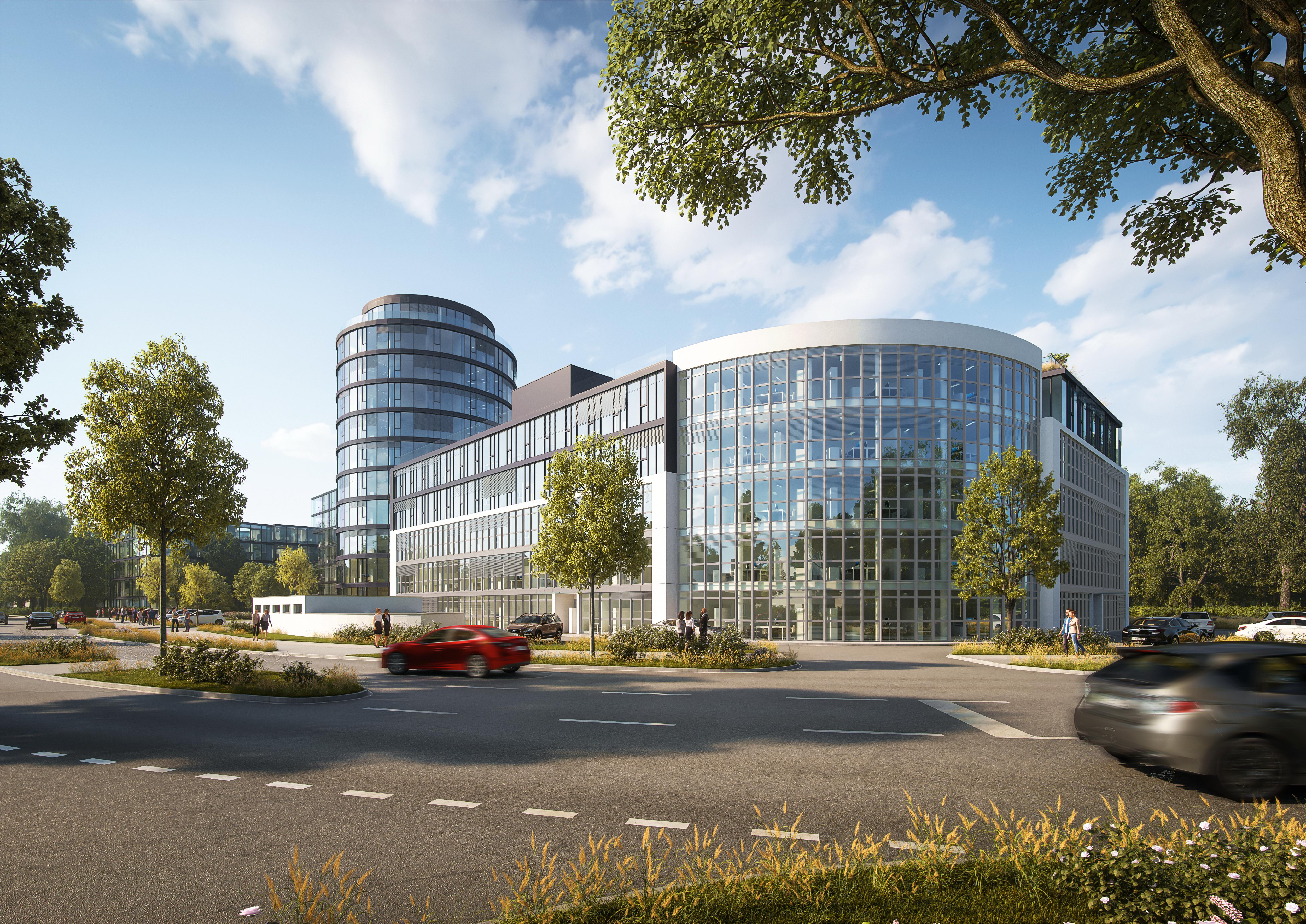 THE VIEW – Die komplett durchgängige Glasfassade sorgt für einen beeindruckenden Panoramablick. Der "THE VIEW" ist das neue Wahrzeichen für den Hightech-Standort Ottobrunn.